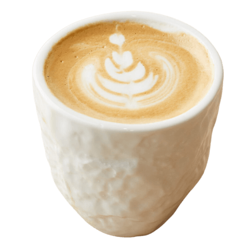 Velvety microfoam milk poured over bold espresso for a smooth finish.