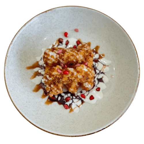 Golden, crispy strips of halloumi cheese, fried to perfection with a soft, salty center. Served with a zesty dip for the ultimate indulgence!